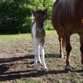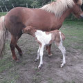 Hamingja hat am frühen Abend gegen 18.00 Uhr ein kleines Hengstfohlen (wie ich ja schon vermutet hatte) auf die Welt gebracht. Wir haben für den jungen Mann den Namen "Leikur vom Nieblumerfeld" ausgesucht. Es bedeutet der Spielerische oder der Lebhafte.